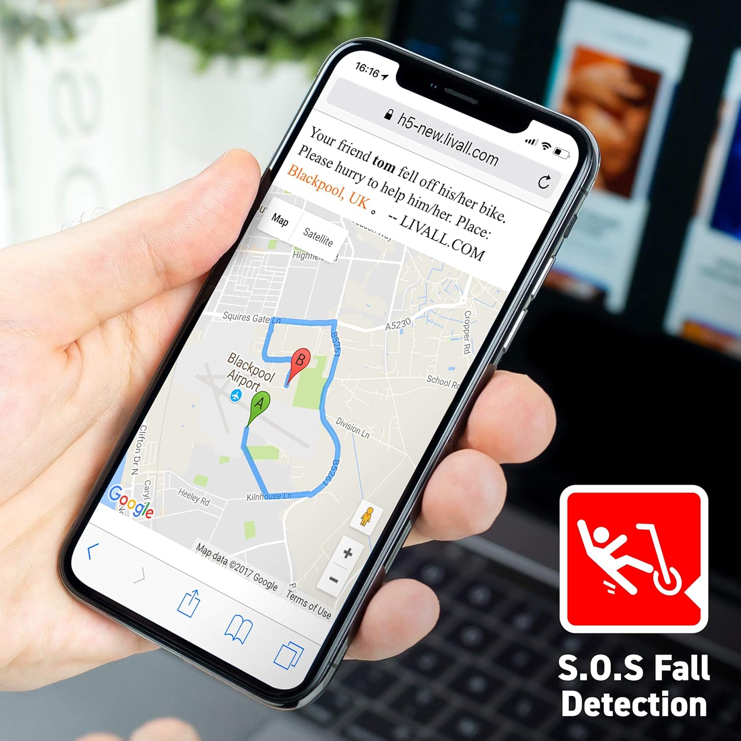 In caso di caduta o impatto violento, il casco rileva l'incidente. Se non viene annullato manualmente entro 90 secondi, l'app LIVALL invia automaticamente un messaggio SMS con la tua posizione GPS ai contatti di emergenza preimpostati.